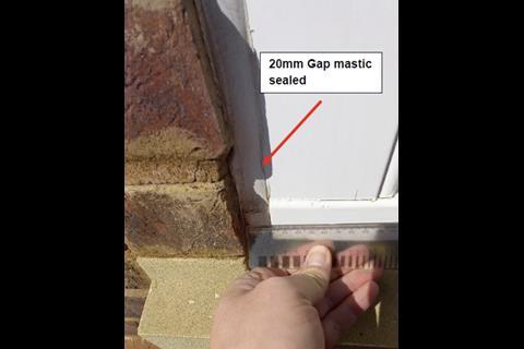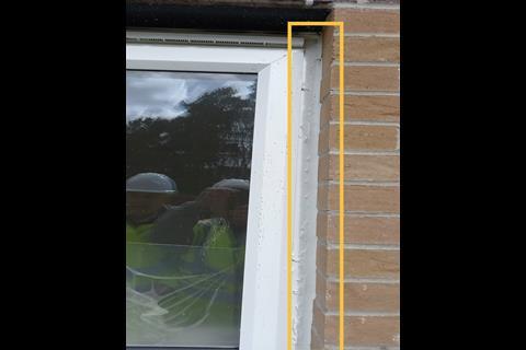 As shown in the first image (above), poorly fitted doors within the frame have the potential to cause water ingress and excessive air leakage, leading to heat loss. An area often picked up during inspections is that the window frames are not installed as per their warranty provider’s guidance. The second image (above) shows a cill that does not extend outwards from the brickwork sufficiently. This will lead to the water falling an insufficient distance from the wall, leading to an area below the window being saturated.