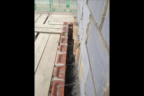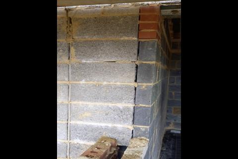 The first two images (above) demonstrate structural issues that could lead to cracking, such as an excessive load on a narrow pier (as seen in the first image). The second image shows stack bonding of blockwork, which means any load on the wall will not be evenly distributed and could cause cracking. A missing vertical damp-proof course (DPC) will lead to water ingress.