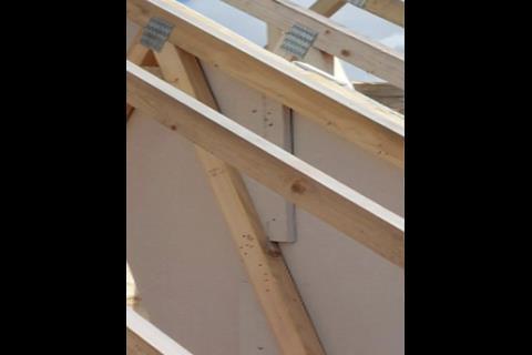 The third image (above) is not a claim but an area where issues are often seen on site. The first rafter is set out too close to the spandrel panel. It should be set 25mm-75mm away. The cover strip should be continuous, not cut around the rafter, and restraint straps are missing. Lack of restraint could lead to movement of the spandrel panel, and a cover strip that does not continue will likely mean the spandrel panel will not provide 60 minutes of fire resistance between dwellings.