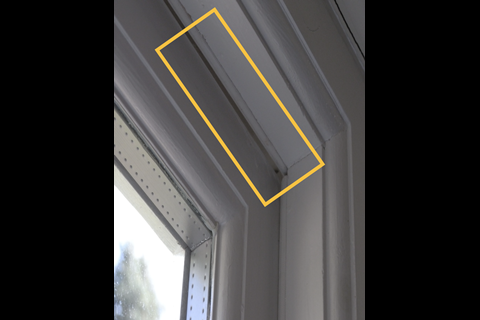 Poorly constructed windows will lead to gaps forming. The first image (above) shows a gap between the opening sash and the frame, which is likely to lead to water ingress and excessive air leakage, causing heat loss. The second image (above) shows a large gap which has been sealed with mastic. This is likely to be a temporary solution as the mastic will deteriorate in time.