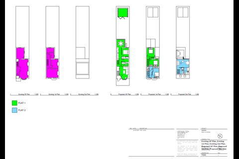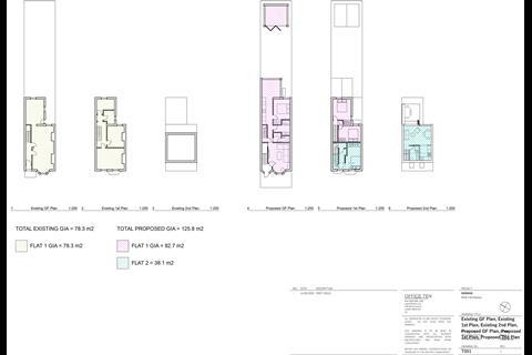 By extending and reconfiguring the layout, the proposal turns a single terrace into two flats – one larger unit suitable for a family, and a smaller one for a couple or individual. The reorganisation includes an additional stair to improve the spatial split. The ground floor and part of the first floor retain access to the garden, while the upper flat includes a roof terrace to ensure external amenity is provided for both units.