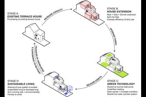 Spearheaded by design studio Office Ten, the Greenest House pilot project is rethinking the standard Victorian and Edwardian terrace homes, hoping to not only improve fabric performance but also increase housing density in a bid to solve the UK’s chronic housing shortage and the environmental impact of underperforming homes.